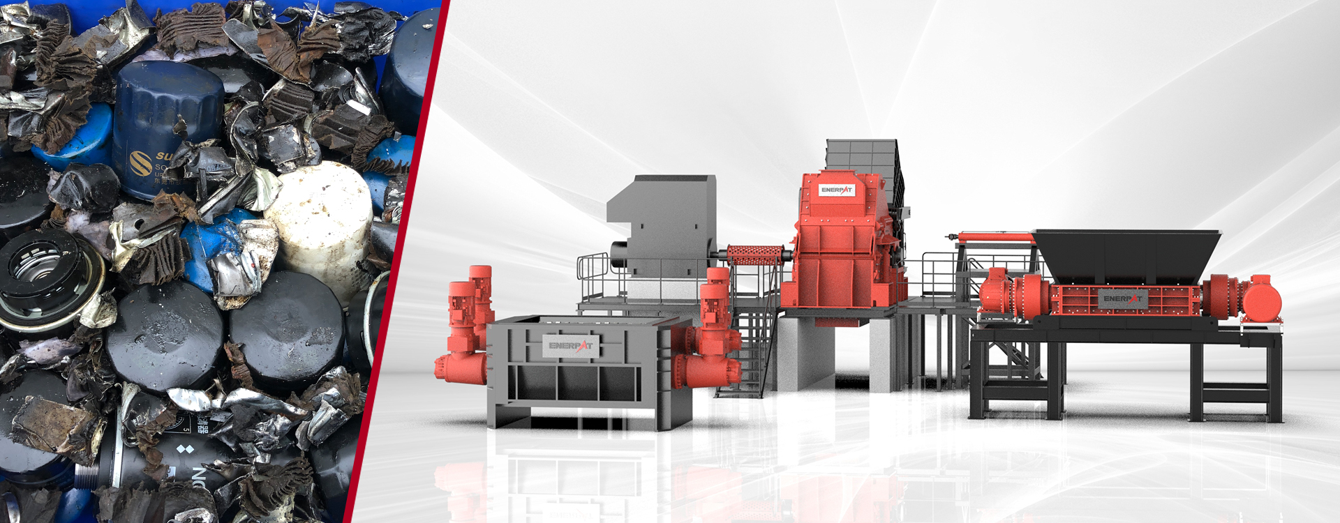 Solução: A empresa escolheu o triturador de eixo duplo ENERPAT como principal equipamento para sua linha de reciclagem de filtros de óleo. Esta solução combina efetivamente tecnologias de trituração, peneiramento e separação para maximizar a recuperação de recursos metálicos e de resíduos de papel.