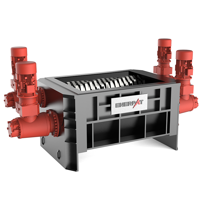 O triturador de quatro eixos da série ENERPAT MSC-E, também conhecido como triturador de 4 eixos ou triturador de eixo quádruplo, é aprimorado por múltiplas tecnologias avançadas, fornecendo britagem de quatro eixos mais potente. Comparado aos trituradores de eixo duplo, o triturador de quatro eixos tem maior força de corte e maior eficiência de britagem, permitindo processar vários tipos de resíduos resistentes e dúcteis.